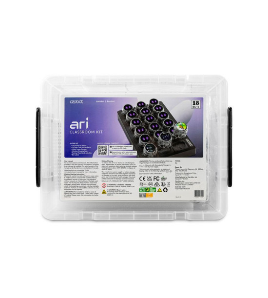 Na rozdiel od tradičných kódovacích robotov je Ari poháňaný operačným systémom Android, čo umožňuje využívať pútavý obsah v rámci rozšíriteľného ekosystému výučbových aplikácií. Platforma aplikácií ponúka pripravené, na štandardy zladené lekcie a aktivity z oblasti informatiky, robotiky a hlavných vyučovacích predmetov – a to pre všetky úrovne zručností. Ari navyše využíva interaktívny dotykový displej s vysokým rozlíšením, ktorý podporuje praktické učenie. Zobrazuje živý text, obrázky a zábavné animácie, vďaka čomu môžu študenti s robotom prirodzene interagovať a okamžite získavať spätnú väzbu. Robot má Wi-Fi pripojenie a komunikuje výhradne so servermi Ozobot. Čo však zostáva nezmenené, sú vlastnosti, ktoré máme na Ozobotoch radi – vreckový formát a možnosť programovať pomocou farebných kódov, editora Ozobot Blockly či programovacieho jazyka Python (a čoskoro aj ďalších). Ari predstavuje prelomový krok vo vzdelávaní STEAM a posun vpred v oblasti vzdelávacej robotiky. Táto sada je navrhnutá pre tímové využitie vo väčších skupinách. Okrem 12 robotov Ari obsahuje nabíjaciu stanicu, 12 sád umývateľných fixiek a súbor aktivít na úvod do práce s robotmi.
