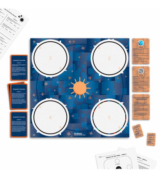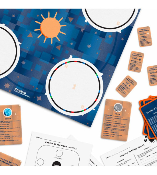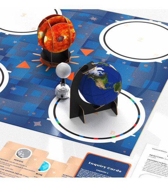 Začnite tým, že zostavíte modely planét a umiestnite ich na hraciu dosku. S pomocou faktografických kariet, aplikácie, poprípade robota Ozobot sa naučíte o striedaní ročných období a jednotlivých fázach Mesiaca. Vidíte, ako planéty okolo seba obiehajú? Teraz už bude ľahké vyplniť zákerné otázky v priložených pracovných listoch!Hra je navrhnutá ako doplnok výučby pomocou konceptu STEAM. Ponúka pripravené kreatívne a vzdelávacie aktivity, ktoré podporujú riešenie problémov, kritické myslenie a spoluprácu prostredníctvom praktických aplikácií v reálnom svete. Balenie obsahuje celkom 8 sád, každá z nich zapojí až 4 žiakov starších ako 8 rokov.