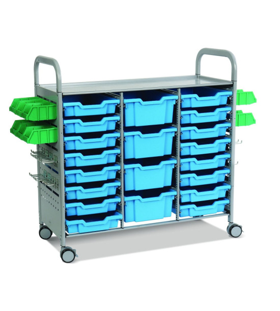 Mobilné STEAM pracovisko Callero je vyrobené z ľahkej ocele bez ostrých hrán, je bezpečné a ľahko sa s ním manévruje v rámci vzdelávacieho priestoru, čo dáva učiteľom maximálnu flexibilitu. Pracovisko pre študentov, môžu využívať materiál a pomôcky v uložených kontajneroch, vďaka čomu je ideálny pre celý rad aktivít STEAM. Dodáva sa s základnou sadou 5 háčikov a 12 drobných zásobníkov na ukladanie malých komponentov, kontajnery sú určené ako bezpečný úložný priestor na väčšie komponenty alebo hotové projekty. Koľajničky StopSafe zvyšujú bezpečnosť tým, že zaisťujú, aby sa kontajnery mohli vytiahnuť len do určitej vzdialenosti, čím sa predchádza nehodám a zraneniam.Robustné a uzamykateľné kolieska umožňujú ľahké manévrovanie pracoviska v rámci učebného priestoru, čo umožňuje študentom pracovať v rámci pracovného komfortu, a pod kontrolou učiteľa. Súčasť dodávky: 4 hlboké kontajnery F2, 16 plytkých kontajnerov F1. Celkový rozmer pracoviska : výška 1065 mm (pracovná doska 885 mm) mm x šírka 1025 mm x hĺbka 435mm. Počet, veľkosť a farbu kontajnerov F1 a F2 je možné kombinovať podľa požiadaviek.