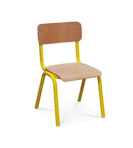 Stolička KLASIK s kovovou konštrukciou. Odolná konštrukcia vyrobená z kruhovej rúrky 22mm, lakovaná práškovými vypaľovanými farbami, nohy sú ukončené plastovými koncovkami. Sedák a opierka sú vyrobené z bukovej tvarovanej preglejky, povrchová úprava polyuretánovým lakom, ku konštrukcii nitované oceľovými nitmi priemeru 5 mm. Stoličky sú konštrukčne riešené tak, aby bola výrazne sťažená možnosť húpania. Stoličky sú stohovateľné. Výška sedenia 26 cm alebo 30 cm. Zvolenú výšku sedenia napíšte, prosím, do poznámky v objednávke. Cena inštalácie a dopravy sa kalkuluje samostatne.