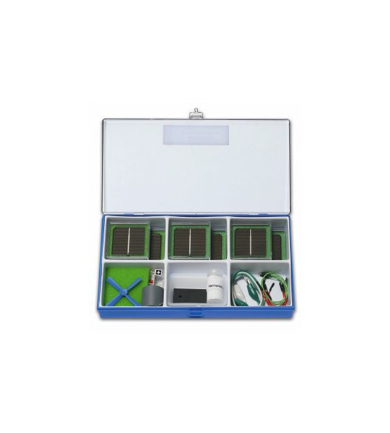 Pomocou tejto spravy sa dajú vykonať nasledovné pokusy: solárna jednotka ako dióda, solárna jednotka ako zdroj napätia, solárna jednotka ako prúdový zdroj, vplyv na intenzitu osvetlenia, vplyv na uhol osvetlenia, vnútorný odpor solárnej jednotky, sériové zapojenie solárnej jednotky, transformácia solárnej energie na svetlo, paralelné zapojenie solárnej jednotky, elektrolýza solárnej jednotky. Rozmery: 27 x 21 x 5cm.