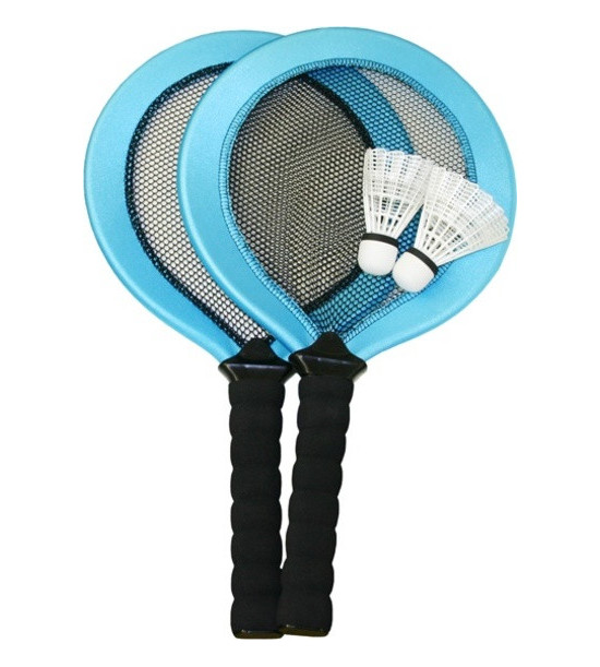 Bezpečné bedmintonové rakety vyrobené z plastu. Rukoväť potiahnutá penou, odrážacia plocha potiahnutá neoprénom. Balenie obsahuje 2 rakety a 2 košíky. Rozmer rakety: priemer 24 cm, dĺžka 45 cm.