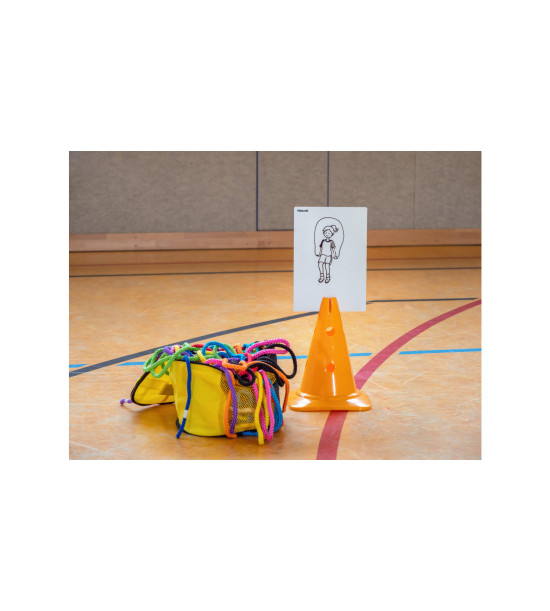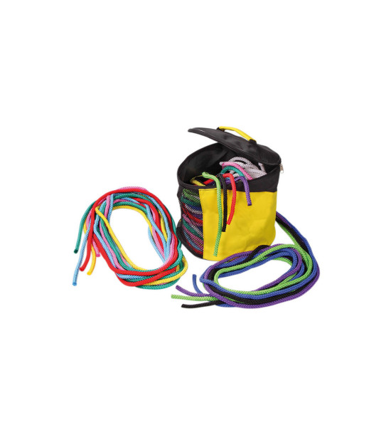 Úsporná sada je ideálna na cvičenie pre celú skupinu. Či už na rozcvičku, vytrvalostné športy alebo preteky. S touto súpravou máte vždy po ruke kompletnú súpravu švihadiel v úložnej taške. Sieťová vložka na prednej strane tašky slúži na vetranie. Rozsah dodávky: 20 ks lano 300cm, priemer 0,9cm v rôznych farbách (farby si nie je možné vybrať) 1 praktická úložná taška so sieťovou vložkou pre optimálne vetranie