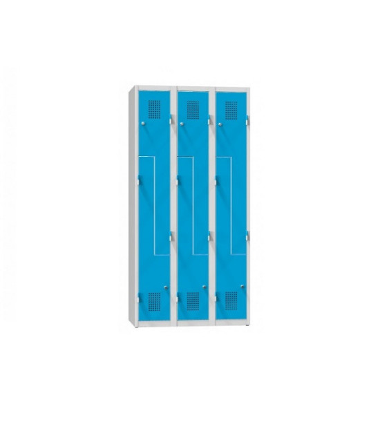 Kovová šatňová skriňa so "Z" dverami, vyrobená z oceľového plechu, dvierka vybavené výstužou. Perforácia na vrchnej aj spodnej časti dvierok umožňuje ventiláciu skrinky. Povrchová úprava skrine práškovou vypaľovanou farbou, korpus v odtieni RAL 7035 sivá svetlá, dvierka výber zo vzorkovníka. Vybavenie každej bunky zahŕňa cylindrický zámok, alebo uzáver na visiaci zámok. Spôsob uzamykania je potrebné zvoliť - cylindrickým zámkom s 2 kľúčmi, alebo uzáverom na visiaci zámok (visiaci zámok nie je súčasťou skrinky). K cylindrickým zámkom je možné doobjednať generálny (univerzálny) kľúč. Pre uľahčenie udržiavania čistoty je možné do každej bunky dodať plastovú vaničku pod obuv.