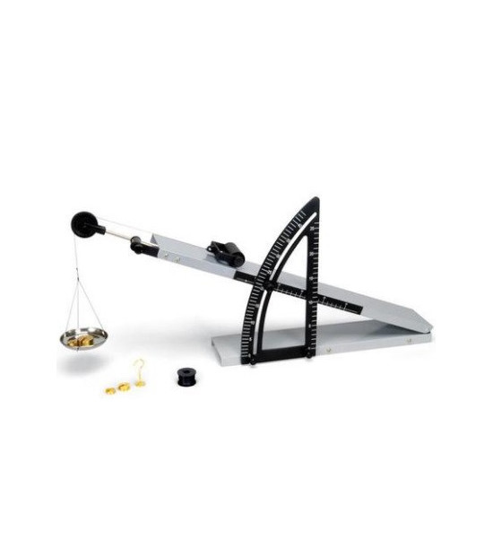 Súprava na skúmanie síl pôsobiacich na teleso na naklonenej rovine a štúdium trenia v závislosti od sklonu roviny. Rovina je nastaviteľná s vyznačenou škálou pre zmenu uhla, výšky a dĺžky. Uhol sklonu je možné nastaviť v rozmedzí 0-45°. Súčasťou balenia je nastaviteľná kladka, valec a špagát. Vyobrazená miska váh nie je súčasťou dodávky. Dĺžka naklonenej roviny: 600 mm, dĺžka základne: 450 mm.