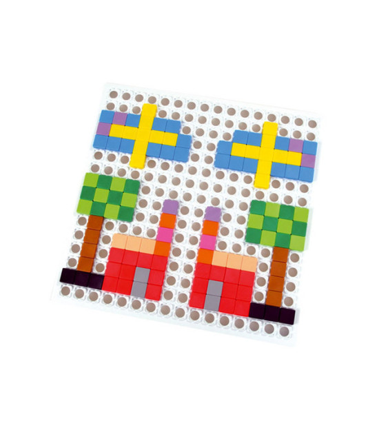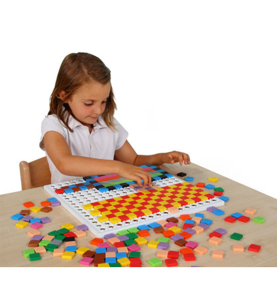 Každá mozaika ponúka nekonečné tvorenie veľkého množstva obrazcov, ornamentov, tvarov či kreatívnych obrázkov. V "Štvorcovej mozaike" deti môžu využívať farebné štvorčeky a ukladať ich na veľký plastový panel. Obsah dodávky: 350 plastových štvorčekov s rozmerom 2,3cm x 2,3cm v 12 farbách, 1 plastový spojovací panel.
