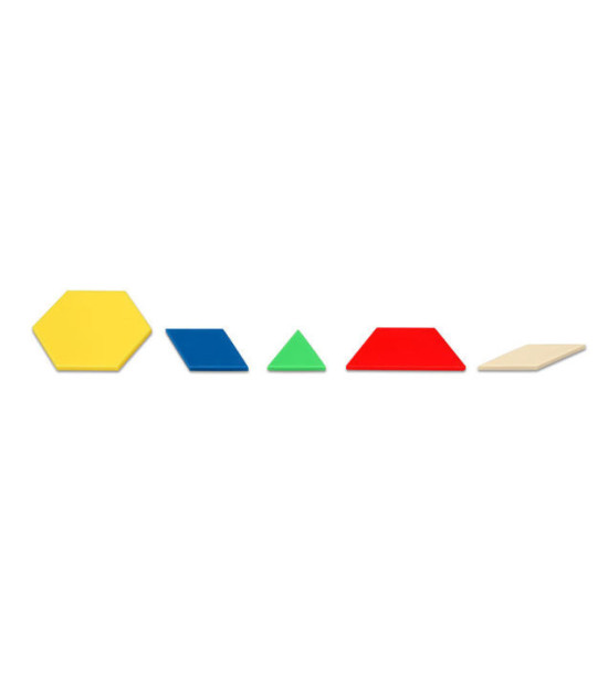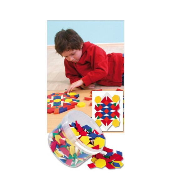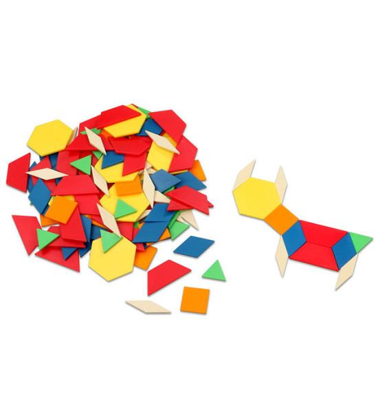 Spolu 250ks devených dielov šiestich základných tvarov s hrúbkou 1 cm v šiestich farbách poskytuje bázu pre vytváranie nespočetného množstva mozaikových obrazcov a tvarov. Obľubená hra nielen pre spoznávanie tvarov, ale i rôzne aktivity zamerané na triedenie, počítanie.