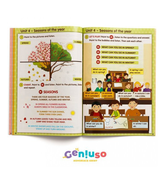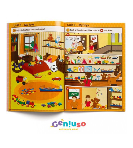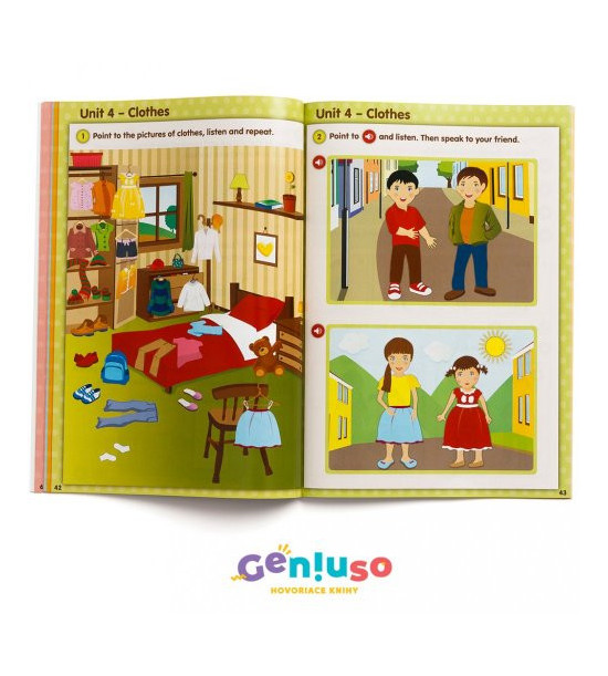 Učebnica pozostáva zo šiestich modulov, ktoré sú koncipované tematicky ako úvodný kurz anglického jazyka. Moduly zohľadňujú kognitívnu úroveň žiaka mladšieho školského veku.Učebnica obsahuje množstvo riekaniek a úloh. Počúvaním a opakovaním jazykových štruktúr umožňuje efektívne učenie sa vizuálnym, auditívnym aj kinestetickým spôsobom.Hovoriaca učebnica Click 1. Interactive English má spolu aj s pracovným zošitom odporúčaciu doložku ministerstva školstva.Témy:Colours, Numbers (1 – 10), My family, My toys, Animals, Clothes, Seasons, Sports, Food, Birthday, Holidays (Christmas, New Year, Easter) UPOZORNENIE: Kniha sa predáva bez hovoriaceho pera. Hovoriace pero Geniuso číta všetky hovoriace knihy s logom Geniuso, resp. IRS, takže si ho stačí kúpiť raz.Témy:Colours, Numbers (1 – 10), My family, My toys, Animals, Clothes, Seasons, Sports, Food, Birthday, Holidays (Christmas, New Year, Easter)UPOZORNENIE: Kniha sa predáva bez hovoriaceho pera. Hovoriace pero Geniuso číta všetky hovoriace knihy s logom Geniuso, resp. IRS, takže si ho stačí kúpiť raz. Ak ho ešte nemáte, môžete si ho zakúpiť samostatne alebo si k tejto knihe zakúpte aj cenovo VÝHODNÝ BALÍČEK obsahujúci hovoriace pero.