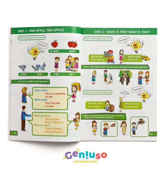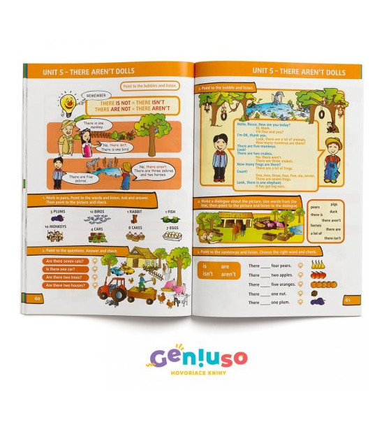 Hovoriaca učebnica je vhodná aj ako úvodný kurz anglického jazyka pre žiakov, ktorí sa začínajú učiť anglický jazyk od 3. ročníka ZŠ. Žiaka celou učebnicou sprevádzajú postavičky, ktoré kontextuálne používajú príslušnú slovnú zásobu a jazykové štruktúry. Množstvo zaujímavých úloh, ako aj rôzne jazykové hry umožňujú žiakovi hravou formou aplikovať slovnú zásobu a jazykové štruktúry. Hovoriaca učebnica Click 3. Interactive English má spolu aj s pracovným zošitom odporúčaciu doložku Ministerstva školstva.Témy:Greetings, My family, Days of the week, Time, Weather, A human body, Farm, The ZOO, Alphabet, My house, My room, Classroom instructions, Sports and activities, Months of the year UPOZORNENIE: Kniha sa predáva bez hovoriaceho pera. Hovoriace pero Geniuso číta všetky hovoriace knihy s logom Geniuso, resp. IRS, takže si ho stačí kúpiť raz.