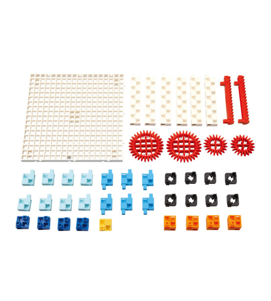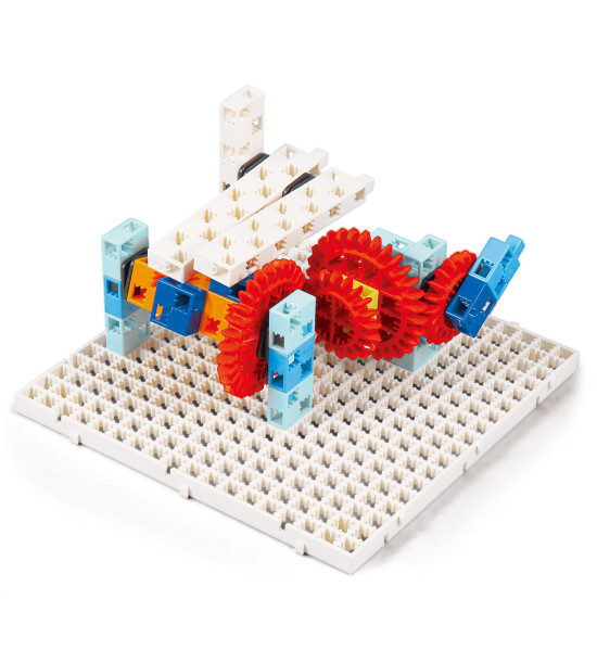 Postavte si model hracej skrinky, továrenského výrobného pásu alebo malý model lisu. Výborné na pochopenie prenosu síl, princípu pohonu alebo plynulého pohybu.