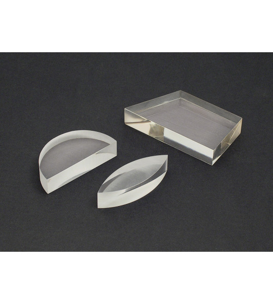 Sada troch optických šošoviek rôznych tvarov na štúdium odrazu a lomu svetla. Spodný povrch je matný - ideálny na pozorovanie svetelných lúčov. Pre experimentovanie na lom a odraz svetla a miešanie farieb odporúčame kupovať spolu so sadou: "Aké farby vidíš?" KV200025.