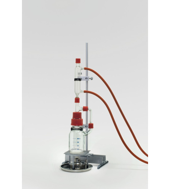 Pomocou Plynového generátora je možné vyprodukovať malé množstvo štandardných laboratórnych plynov. SVS systém je založený výlučne na skrutkových spojoch zložených zo skrutkovacieho uzáveru, kremíkového tesniaceho krúžku a PTFE manžety. To robí používanie častí aparatúry oveľa jednoduchším pre študentov a zabezpečí bezpečnosť a odolnosť voči presakovaniu spojení medzi komponentmi. Ak je nastavenie urobené správne, sú plyny v aparatúre v kontakte len so sklom a teflónom. Výroba plynu môže byť prerušená kedykoľvek. Naviac, z tohto setu sa dá poskladať jednoduchá aparatúra na skvapalnenie plynu alebo jednoduchá extrakčná aparatúra. Obsahuje: fľašu s plynom ako univerzálny generátor; jednocestný ventil, filtračnú trubicu, tlakový únikový ventil; odkvapkávací lievik; Liebig chladič; extrakčnú prípojku rúrky; ohnutú spojku na extrakciu; ohnutú spojku na kondenzovanie pár; stojan; svorku 2x; tyč stojana 330mm 2x; svorkový držiak; trojnožku; držiace spony; keramickú drôtenú sieťku; kahan; ohňuvzdornú sieťku; kadičku 100ml; gumené rúrky. Materiál pre jednu študijnú skupinu.