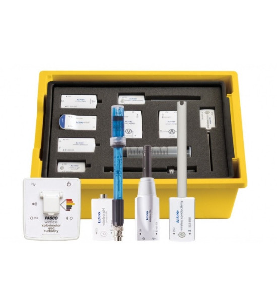 Sensorium Chémia 4.1 - sada bezdrôtových senzorov PASCO v žltom boxe, prispôsobená pre hodiny Chémie. Sada obsahuje: bezdrôtový senzor teploty, bezdrôtový senzor pH, bezdrôtový senzor CO2 s príslušenstvom (polopriepustný návlek s vodotesnou objímkou na meranie rozpusteného CO2, ktorý prechádza cez membránu na monitorovanie napr. fotosyntézy alebo dýchania vodných rastlín a živočíchov), bezdrôtový senzor vodivosti, tlaku, bezdrôtový kolorimeter a turbidimeter, plochú pH elektródu a ORP elektródu, USB s 46 žiackymi úlohami, tlačenú metodiku a jednoužívateľská licenciu softvéru SPARKvue.