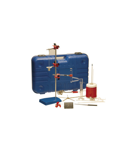 Všetko potrebné pre viac než 30 pokusov na úrovni základnej školy. Pokusy: termometria, kalorimetria, rozťažnost pevných látok, kvapalín a plynov, zmena stavu, šírenie tepla, prenos energie. Všetko je uložené v kufríku 700mm × 450mm × 180mm.