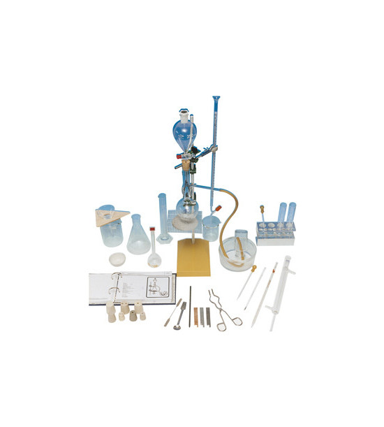 Jednoduchý a zrozumiteľný návod popisuje viac než 70 základných chemických pokusov. Pokusy: laboratórne techniky, kyseliny-zásady, soli, oxidačné činitele, redukčné činitele, vodík, voda, dusík, vzduch, chlór a jeho zlúčeniny, uhlík a jeho anorganické zlúčeniny, rovnováha, aspekty energie, hydrouhličitany, alkoholy, aldehydy, uhlohydráty, organické a mastné kyseliny, syntetické materiály, chemická kinetika, oxidačno-redukčné procesy, chemická analýza . Všetko je uložené v 2 kufríkoch 700mm × 450mm × 180mm.
