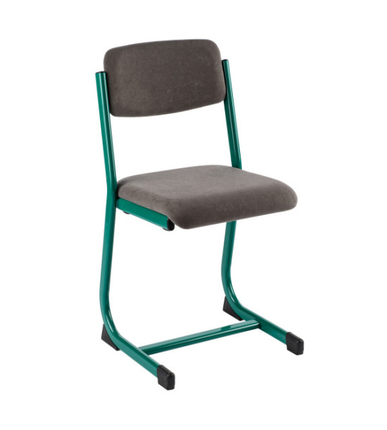 Kovová konštrukcia z plochooválneho profilu 38x20 mm, lakovaná práškovými farbami (komaxit – výber z viacerých farieb), nohy stoličky sú ukončené plastovými koncovkami. Sedák a opierka sú vyrobené zo 7-vrstvovej celobukovej tvarovanej preglejky, čalúnenej oteruvzdornou sivou látkou (pri väčších množstvách možnosť výberu z 10 farieb). Sedáky a opierky sú priskrutkované ku konštrukcii metrickými skrutkami M6. Stoličky sú stohovateľné. Výška sedáku 46 cm (veľkosť č.6). Cena dopravy a inštalácie sa kalkuluje samostatne.