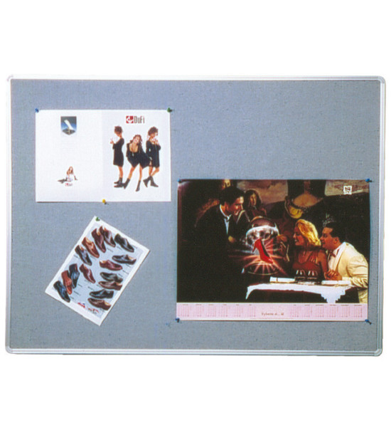 Napichovacia tabuľa s textilným povrchom je kvalitnej konštrukcie, orámovaná hliníkovým rámom povrchovo upraveným prírodným eloxom, so zaoblenými plastovými rohmi šedej farby. Zavesenie tabuľe je možné na výšku alebo na šírku.