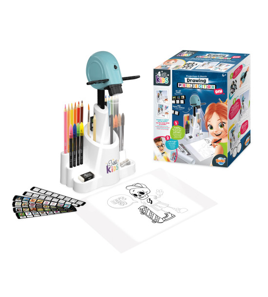 Výškovo nastaviteľný projektor na zmenu veľkosti obrázku.Projektor je obojstranný, takže môžete premietať obrazy na stôl aj na stenu.Môžete ho dokonca vybrať zo stojana, aby ste mohli z ruky premietať obrázky kdekoľvek budete chcieť! Možnosť zaostrenia pre lepší obraz.Obsahuje 30 obrázkov a 200 návrhov, ktoré môžete reprodukovať a vytvoriť si svoj vlastný svet a všetky materiály, ktoré potrebujete na vyfarbenie.Vyžaduje batérie 3x AA (nie sú súčasťou). Určené pre deti od 3 rokov.