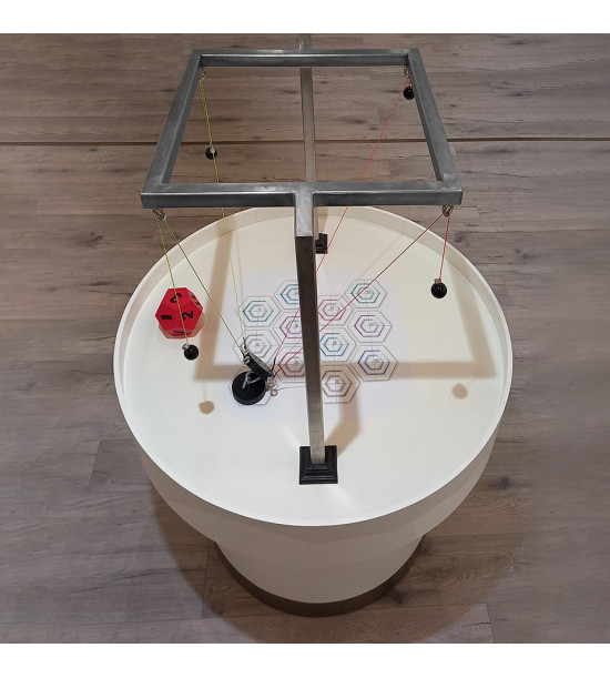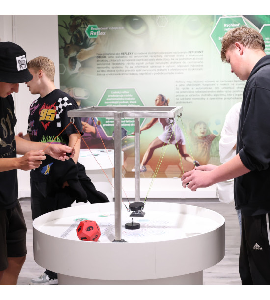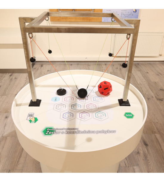 Tester zladenia pohybov a mentálnych činností slúži na zábavné skúšanie synchronizácie pohybových zručností zúčastnených. Hra je určená pre 2 až 4 osoby. Každá ovláda jednu až dve šnúrky a snaží sa koordinovať pohyby so spoluhráčom tak, aby žeriavom nabrali materiál. Ten sa nachádza vo vyhradenom priestore v dosahu háčika. V pokračovaní činnosti uložia teliesko na miesto v súradniciach stola, určené hodom mnohostrannej „kocky“ s číselnými hodnotami.