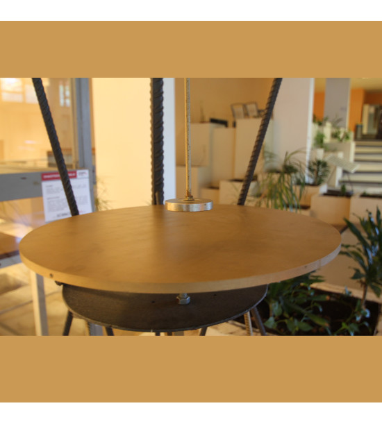 Stolová konštrukcia zostavy, priemer vrchnej dosky 79 cm, jej výška od základne 75 cm, celková výška zostavy do 2 m, bez potreby elektrického napájania.
