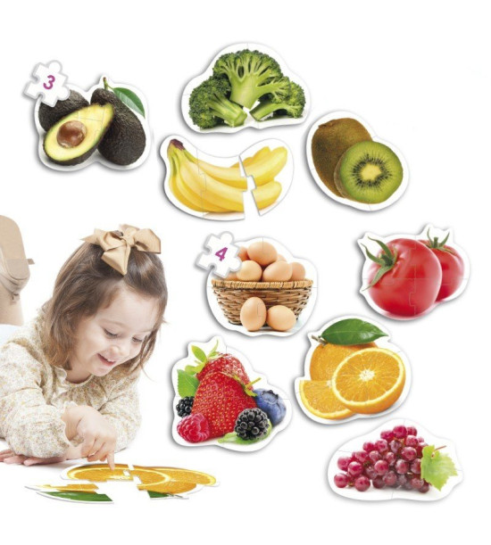 Veľká edukačná súprava puzzle. Sada 9 nadrozmerných puzzle so 4 a 5 dielikmi zobrazuje rôzne živočíchy. Vďaka svojej veľkosti sú puzzle určené pre deti už od dvoch rokov. Balenie obsahuje 31 dielikov