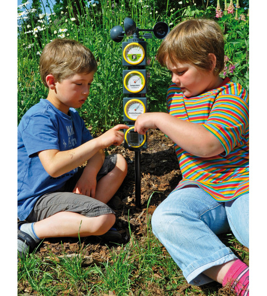 Pomocou tejto kompaktnej zostavy meteorologických staníc je možné sledovať základné meteorologické parametre: silu vetra, teplotu vzduchu, zrážky (príp. vlhkosť). Kocky môžu byť umiestnené v zásuvnom systéme ako zvislá meteorologická stanica alebo jednotlivo na rôznych miestach. Rozmery kociek: 8 x 8 x 8 cm, celková výška zostavy vrátane zapichovacej tyče: 65cm 3-dielny set obsahuje: anemometer (rýchlosť vetra a smer vetra), teplomer a zrážkomer. Je možné doobjednať hygrometer 11900053C.