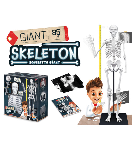Detská experimentálna súprava obsahuje približne 85 cm vysoký model ľudskej kostry s príslušenstvom (podstavec, štítky na označenie jednotlivých kostí, röntgenové snímky). Kosti majú realistickú štruktúru a farbu. Kostra je plne kĺbová a dieťa si ju môže nastaviť do akejkoľvek polohy. Súčasťou je podstavec na umiestnenie kostry na stôl. Štítky, ktoré sú súčasťou je možné použiť na označenie jednotlivých kostí a röntgenové snímky poslúžia pri hre na profesiu rádiológa.Súprava obsahuje aj originálny obrázkový návod so slovenským prekladom. Je vhodná pre deti od 8 rokov.