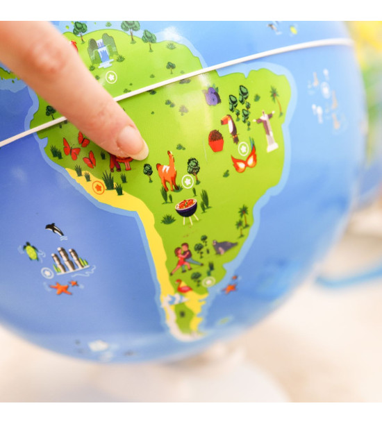 Inovatívny glóbus Orboot Náš svet umožňuje deťom objaviť viac ako 400 divov sveta a získať poznatky o viac ako 1000 zaujímavostiach zo sveta zvierat, gastronómie, kultúry, pamiatok, krajín a vynálezov. Podporuje rozvoj vedomostí, slovnej zásoby, jazykových znalostí a kognitívnych schopností. Hmotnosť 1,6 kg. Rozmery 26 x 26 x 35,5 cm. Vhodné pre predškolákov a mladší školský vek (4 - 10 rokov).EAN: 8582000006395