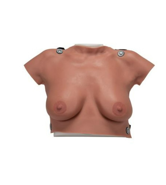 Realistické samovyšetrenie s prirodzeným odliatkom hornej časti ženského tela so stredne veľkými prsiami. Dá sa ľahko nosiť pre lepšie samovyšetrenie prsníkov. Vyrobené z nového vysokokvalitného silikónu 3B SKINlike™. Zobrazuje pokožku v najjemnejších detailoch. Veľmi realistické na dotyk a dermatologicky testované. Vyšetrenie prsníkov je možné vo vzpriamenej aj ležiacej polohe. 2 benígne nádory, 4 zhubné nádory, 2 typické anomálie v rôznych štádiách vývoja pre zdokonalenie schopnosti samovyšetrenia. Dodáva sa s púdrom, postrojom a stojanom.