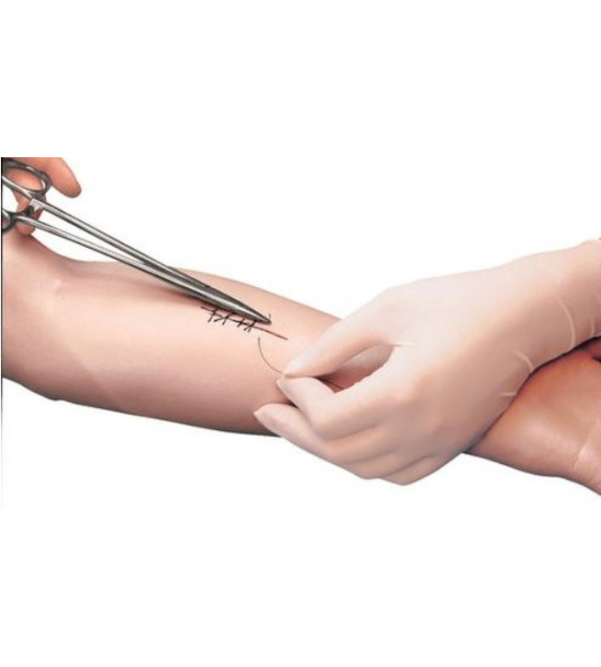 Model ruky umožňuje nácvik šitia rán na ruke. S rukou sú dodávané: sada šitia (ihla a niť) a 3 rany, rezné poranenia, ktoré sa dajú umiestniť kdekoľvek na ruke a niekoľkokrát ich zašiť. Mäkký a poddajný materiál zaručuje, že sa stehy pri utiahnutí nevytiahnu. Rozmery: 62x18x13 cm, hmotnosť: 1 kg.