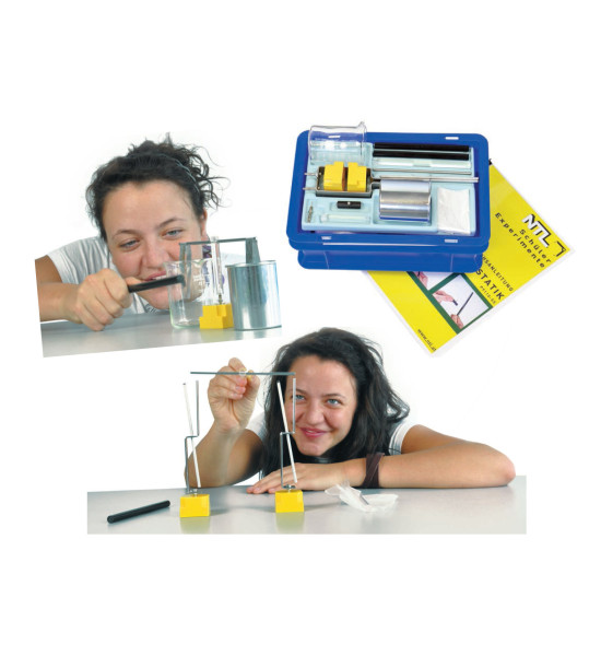 Slúži na pokusy na témy: elektrostatický náboj, elektrostatické interakcie, influencia – polarizácia, Faradayova klietka. Súprava obsahuje: Elektroskop ŽP; Hliníkový profil s 4 mm kolíkom pre upevnenie v izolovanej podstave – ŽSP zdierka robustný hliníkový ukazovateľ L = 140 mm, na ihle kvôli minimálnemu treniu; Tyč z akrylu 150 x 10 mm s otvorom pre hliníkovú tyč D = 4mm; Plastová tyč, 150 x 10 mm; Plastová tyč 150 x 10 mm s ložiskovým otvorom; Polyetylénová handrička (trecia tkanina); Hliníková tyč 150 x 4 mm, slúži ako vybíjač; Akrylová tyč s otvorom, 70 x 10 mm; Valcová dútnavka; ŽSP zdierka (izolant); Banánik (4 mm) s ihlou; Hliníkové pásiky (jednoduchý elektroskop); Faradayov pohár ŽP; Kadička 150 ml, nízka; Plastová vložka Elektrostatika; Úložný box II, mini, s krytom; Plán rozloženia a 2 samolepky.