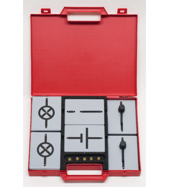 Modulová sada obsahuje 6 podstavcov so základnými elektrickými elementmi a niektoré príslušenstvo na realizáciu viac ako 12 zaujímavých pokusov spolu s jasne zostaveným manuálom. V pevnom obale (44 x 33 x 10cm) s penovou náplňou. Prehľad pokusov: jednoduchý elektrický obvod, elektrický obvod so spínačom, vodiče/nevodiče, elektrické vodiče v kvapalinách, elektrický obvod s premenlivým spínačom, sériové zapojenie, paralelné zapojenie, sériové zapojenie batérií, meranie napätia, meranie prúdu, elektrický odpor, tepelný účinok elektrického prúdu, elektromagnet, elektrický zvonček, prenos - operačný kontakt. Obsahuje materiál pre jednu pracovnú skupinu.