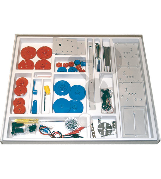 Obsahuje 26 rôznych ozubených kolies, remeníc a stupňovitých kolies, vrátane 8 rôznych prevodoviek pre jednoduchú inštaláciu.Možno zostaviť nasledujúce typy modelov a strojov: - Prevodovkový motor - Elektrická stolová vŕtačka so stupňovitými vrtákmi - Elektrická stolová kotúčová píla - Trojkotúčový lisovací stroj s ložiskovými telesami - Ručná vŕtačka s manuálnou prevodovkou - Kladka sa šnekom - Kladka s viacstupňovou prevodovkou a bezpečnostnou kľukou - Sústruh - Dynamo - Model diferenciálnej prevodovky