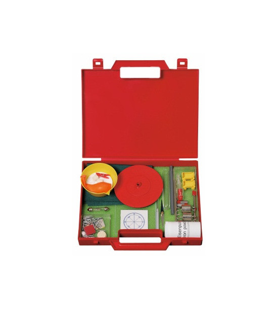 Súprava obsahuje 24 rôznych súčastí: ružicu kompasu, magnetickú ihlu so stojanom, magnetické tyče, železné piliny, malé vagóny, sadu háčikov, obrúsenú tkaninu, kyvadlo a trecie tyče. Rozmery: 27 x 21 x 5cm. Prehľad pokusov: magnetické materiály, magnety majú silu, prenikavé sily, čiary magnetického poľa, keď sa "stretnú" dva magnety, môže sa magnet vznášať?, ako sa vyrábajú magnety?, zemské magnetické pole, magnetický motor, ako sa môže využívať magnetizmus?, elektrické napätie, sily medzi dvoma nabitými telesami, polarizácia a účinok, nabitý balón, model elektroskopu, účinok elektroskopu, elektrostatický tanec. Obsahuje materiál na prácu jednej skupiny.