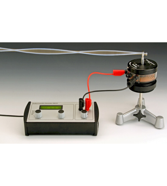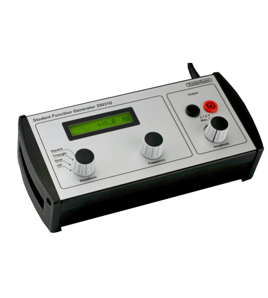Žiacky generátor funkcií. Nastavenie troch charakteristík pomocou samostatných ovládačov : priebeh/tvar vlnenia, frekvencia a amplitúda. K dispozícii je jeden výstup, vybavený 4 mm bezpečnostnými konektormi na prepojenie s reproduktorom, generátorom vibrácií s dostatočnou amplitúdou pre rezonančné a difrakčné experimenty.Frekvenčný rozsah presahuje počuteľný rozsah. Najnižšie frekvencie sú vhodné pre AC experimenty. Frekvencia sa nastavuje ovládačom citlivým na rýchlosť otáčania. Ak otáčate pomaly, nastaví sa posledná číslica na displeji. Pri rýchlejšom otáčaní sa odozva plynule zrýchľuje. Generátor pokrýva šesť rozsahov od 0,05 Hz do 50,00 kHz. Frekvencia je stabilná v rozmedzí 0,005 %. Generujú sa sínusové, trojuholníkové alebo štvorcové signály. Skreslenie sínusovej vlny je menšie ako 0,25 % v počuteľnom rozsahu (20 Hz – 20 kHz) a zostáva pod 1 % v celom frekvenčnom rozsahu (0,05 Hz – 50 kHz).Zabudovaný zosilňovač : amplitúda signálu je plynule nastaviteľná od 0 V do špičkového napätia 7,5 V (15 V p-p; 5,3 V RMS). Je možné dodať viac ako 1A špičkový prúd. Výstup je chránený proti preťaženiu.